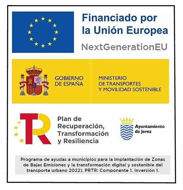 En Jerez de la Frontera, la ZBE se está desarrollando en el marco del Plan de Recuperación, Transformación y Resiliencia (PRTR), cofinanciado por la Unión Europea – Next Generation EU.
